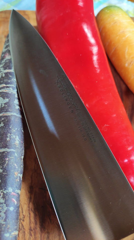 Burgvogel kokkekniv, bladlængde 18 cm, håndtag af oliventræ