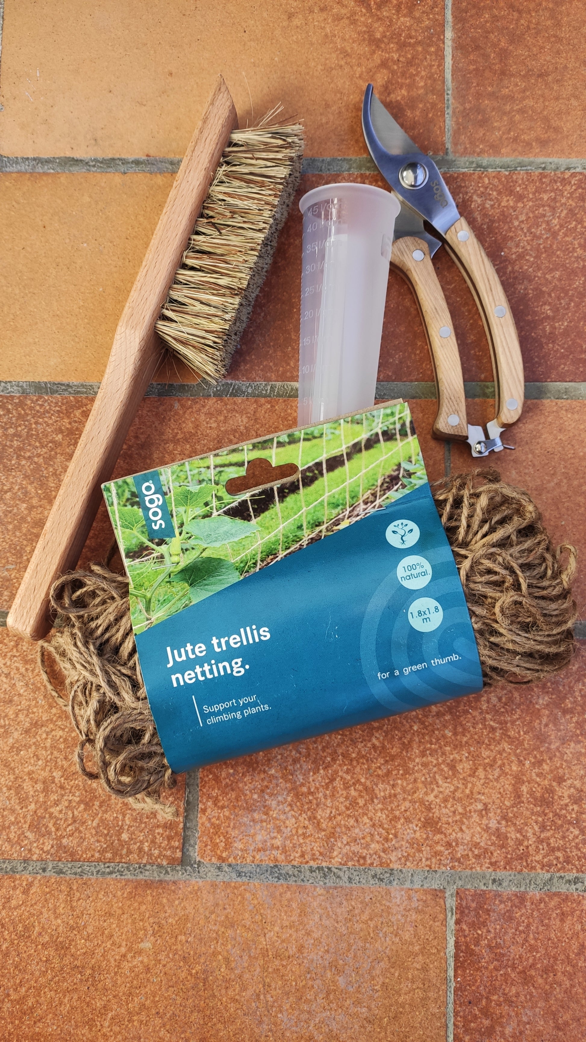 For det andet finder du i dette sæt havesaksen fra Sogo, der er så bæredygtig som muligt, fremstillet af rustfrit stål og træ. Med det ergonomiske design kan du klippe grene op til 25 mm.